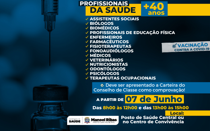 NOVA ETAPA DE VACINAÇÃO: PROFISSIONAIS DA SAÚDE +40 ANOS