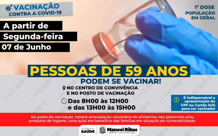 Semana para nunca mais esquecer! Chegamos na fase 59+ (sem comorbidades) da vacinação