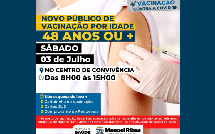 A Prefeitura de Manoel Ribas amplia a vacinação para pessoas a partir dos 48 anos neste SÁBADO (03/07)!?