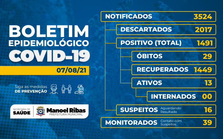 Informamos que não foram diagnosticados novos casos de COVID-19 em Manoel Ribas.