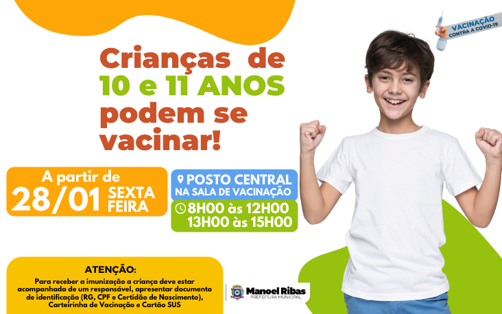 Papais, mamães e responsáveis: : a vacinação contra Covid-19 está liberada para as crianças de 10 e 11 anos em geral!