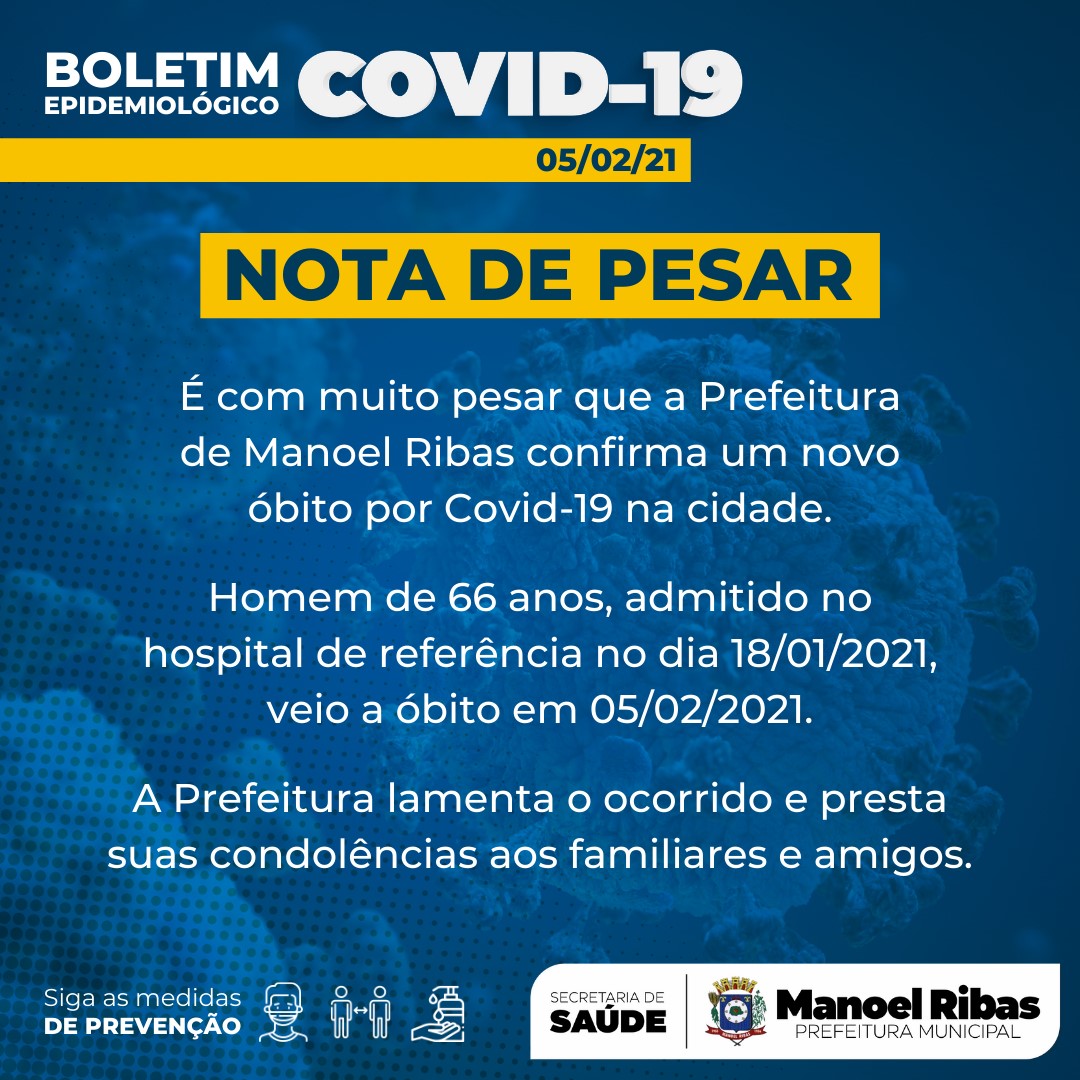 Informamos que hoje não ocorreram novos casos positivos de COVID-19, apenas altas de positivos ativos. Infelizmente, informamos mais um óbito por COVID-19 em nossa cidade, paciente do sexo masculino de 66 anos que encontrava-se internado em hospital de referência.