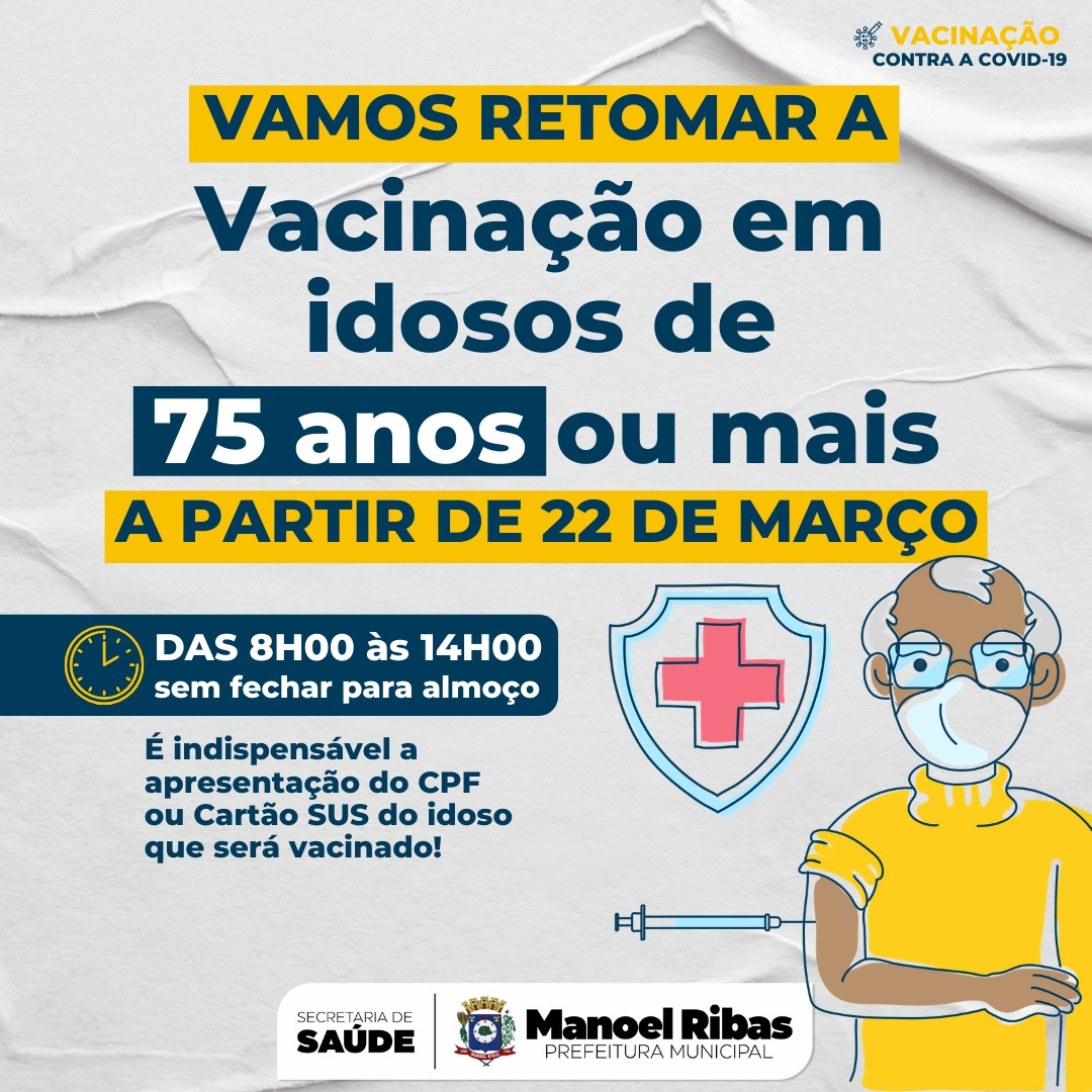 Manoel Ribas recebeu novas doses da vacina contra a Covid-19. E essa quantidade de doses vai possibilitar que sigamos com plano de vacinação para as faixas de 75 anos ou mais, a partir de segunda-feira (22/03).