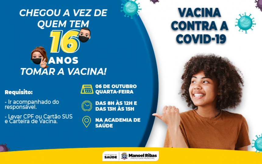 NOVA ETAPA DE VACINAÇÃO: PESSOAS COM 16 ANOS + 05/10/2021