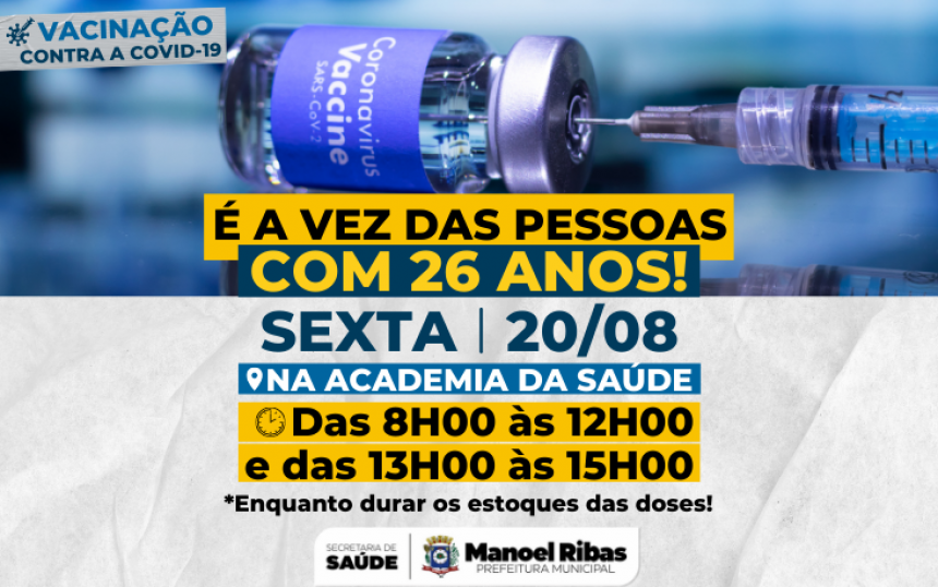 NOVA ETAPA DE VACINAÇÃO: PESSOAS DE 26 ANOS + 19/08/2021