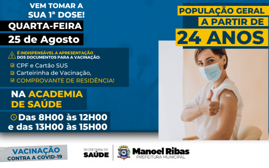 NOVA ETAPA DE VACINAÇÃO: PESSOAS DE 24 ANOS + 24/08/2021