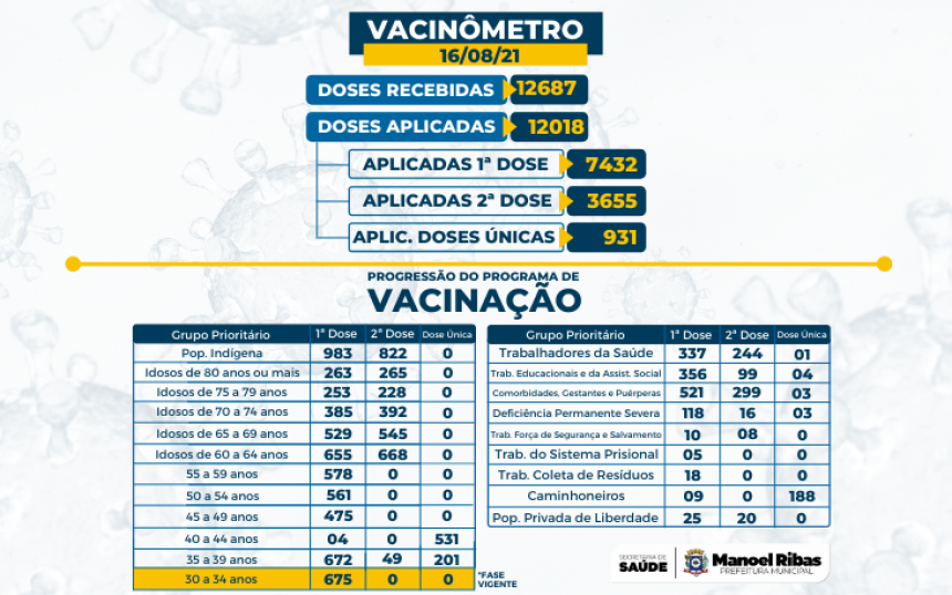 NOVA ETAPA DE VACINAÇÃO: PESSOAS DE 30 ANOS 12/08/2021