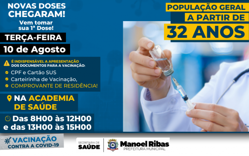 NOVA ETAPA DE VACINAÇÃO: PESSOAS DE 32 ANOS 09/08/2021
