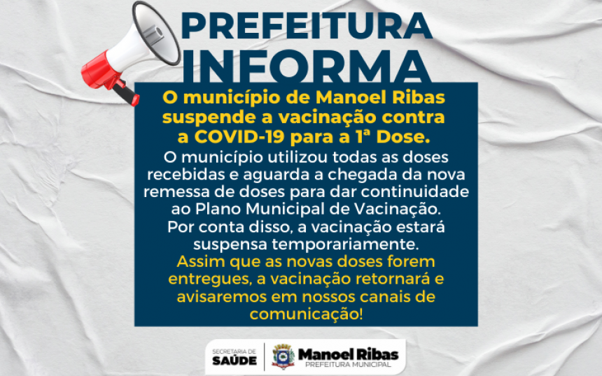 PREFEITURA INFORMA SUSPENSÃO DA VACINAÇÃO 27/07/2021