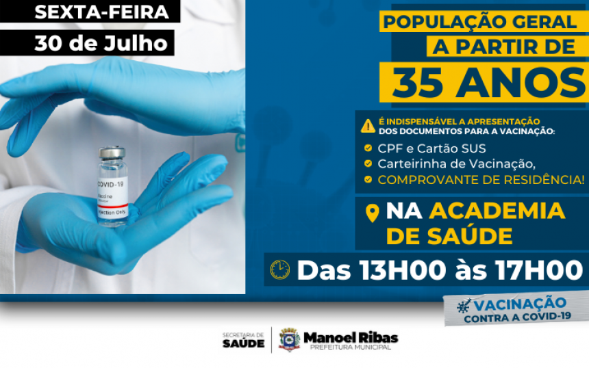 NOVA ETAPA DE VACINAÇÃO: PESSOAS DE 35 ANOS 29/07/2021