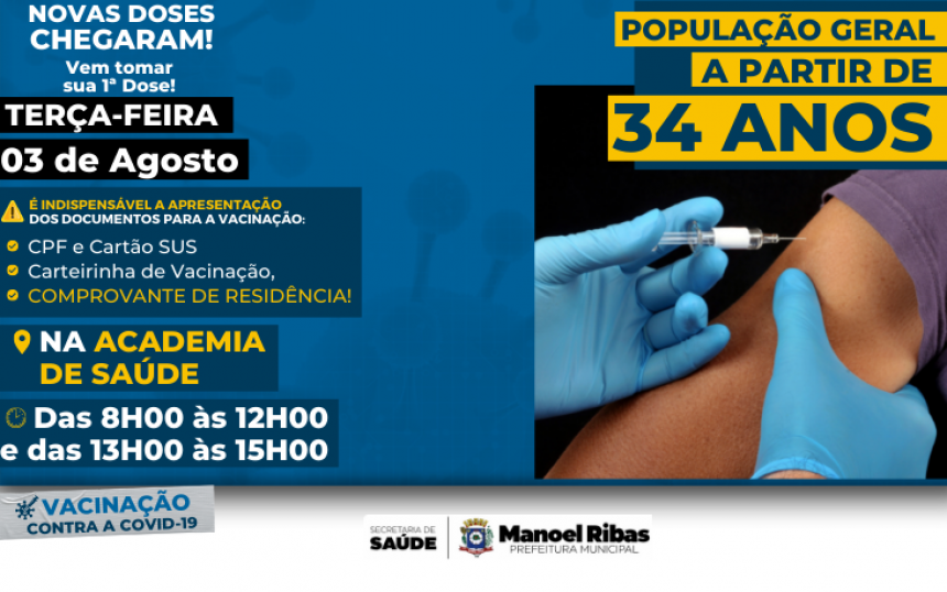 NOVA ETAPA DE VACINAÇÃO: PESSOAS DE 34 ANOS 02/08/2021